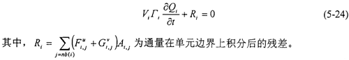 在計(jì)算出無(wú)粘通量和粘性通量后,代入(5-14)式可得到半離散的差分方程: