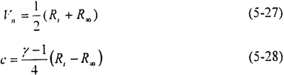 其中無(wú)反射邊界條件是根據(jù)特征線的方法來(lái)求出邊界上的參數(shù)值。根據(jù)一維完全氣體無(wú)粘非定常運(yùn)動(dòng)的方程組,在亞聲速的條件下由邊界上的入射波和出射波關(guān)系可以得到兩個(gè)Riemann不變量: