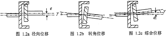齒輪聯(lián)軸器的分類:一般按齒形分,當(dāng)外齒軸套在工作圓切平面內(nèi)的齒形是直線時稱為直齒聯(lián)軸器;當(dāng)外齒軸套在工作圓切平面內(nèi)的齒形是鼓形時稱為鼓形齒聯(lián)軸器,另外還有其它分類方法。由于鼓形齒輪聯(lián)軸器對安裝誤差不敏感在使用中內(nèi)外齒輪允許較大的偏心(其偏心主要有以下三種形式圖1.2a 、1.2b 、1.2c ) ,因此應(yīng)用比較廣泛。本文主要對鼓形齒輪聯(lián)軸器的特性進(jìn)行研究。