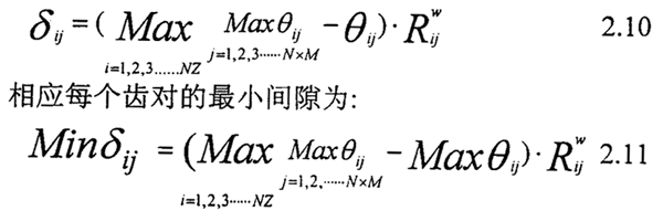 ,其中最大值所對應(yīng)齒對上的點(diǎn)則為內(nèi)齒輪轉(zhuǎn)過θ后,NZ個(gè)齒中最先嚙合的齒對上的嚙合點(diǎn),則在內(nèi)齒輪轉(zhuǎn)過θ時(shí),對應(yīng)齒對圓周方向間隙為:
