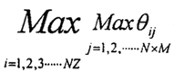 圖2.6是圖2.5的三維表示方法,對于內(nèi)外齒一對對應(yīng)齒來說(設(shè)內(nèi)齒輪為主動(dòng)輪)當(dāng)內(nèi)齒輪齒轉(zhuǎn)過θ,ON-XNYNZN,齒廓上的一點(diǎn)A(xAN,yAN,zAN)也轉(zhuǎn)過θ到達(dá)A′(xAN,yAN,zAN),相應(yīng)外齒的對應(yīng)點(diǎn)B(xBw,yBw,zBw)要轉(zhuǎn)過θ到達(dá)B′(xBw,yBw,zBw)才參與A′點(diǎn)重合。如果把內(nèi)齒第I個(gè)齒面沿徑向劃分為N條網(wǎng)格,軸向劃分為M條網(wǎng)格,共劃分成N×M個(gè)網(wǎng)格點(diǎn),在內(nèi)齒輪上Aij-轉(zhuǎn)過θ角后到達(dá)A′ij,外齒輪上與之對應(yīng)的點(diǎn)Bij需要轉(zhuǎn)過θ′ij才能與點(diǎn)A′ij重合,第I個(gè)齒對的整個(gè)N×M個(gè)點(diǎn)中外齒輪轉(zhuǎn)過所對應(yīng)的點(diǎn)為該齒對有載荷時(shí)優(yōu)先嚙合的點(diǎn),即無載荷時(shí)的最小間隙點(diǎn)。對于所有NZ個(gè)齒來說:在內(nèi)齒輪轉(zhuǎn)過θ后,每個(gè)齒對都有一個(gè)優(yōu)選嚙合的點(diǎn),使外齒輪轉(zhuǎn)過的角度最大