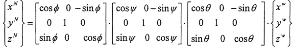 與純的轉(zhuǎn)角相似坐OW-XWYWZW——ON-XNYNZN標(biāo)變換為:
