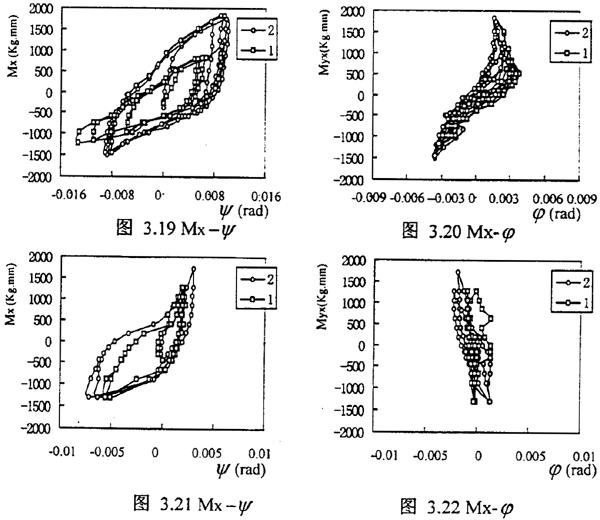 從力矩圖中我們可以看出Mx-ψ, Mx-具有明顯的遲滯曲線,這與理論分析