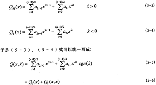 為了得到(3-6)式所示的l,2,將擬合得到的各冪函數(shù)多項(xiàng)式奇、偶次項(xiàng)分開寫成(3-5)式形式并作對(duì)應(yīng)的曲線圖,如圖3-2(見34頁(yè))所示,這樣就將恢復(fù)力分解成了單值非線性函數(shù)曲線和雙值的非線性函數(shù)閉合曲線,由此得到了對(duì)應(yīng)的l(x)和2(x,)的若干組函數(shù)表達(dá)式: