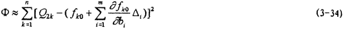 當試驗數(shù)據(jù)值(Xk,2k),(k=1,2,…,n)和初始近似值bi(0)(i=1,2,...,m)給定后,系數(shù)aij均可算出,因此由方程組可解出△i,進而得bi的值。當算出的|△t |值較大的時,可令當前的bi值代替原來的初始近似值,重復計算aij,,并解方程組(3-36)得新的△i,進而得bi。這種過程可以重復進行,直至|△t |的值小到給定的精度為止。