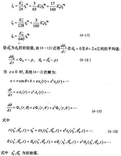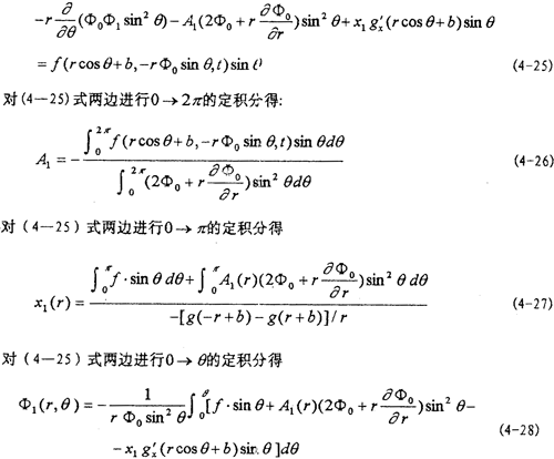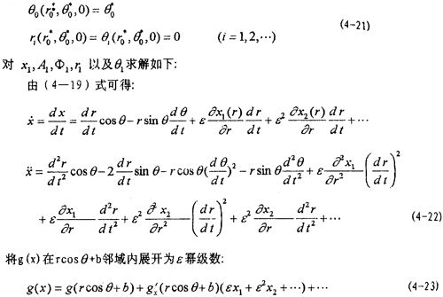 式中=g/x,然后將(4-22),(4-23)及f(x,,t)在rcosθ+b與-rф0sinθ鄰域內(nèi)以ε冪級數(shù)展開式代入(4-4)式,由等號兩端ε的系數(shù)相等得: