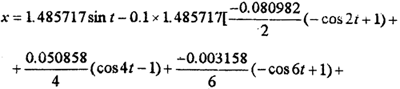 例  +3x-3x3+x5-2x7+x9=0.1(-2.03059+3cost)             (4-76)