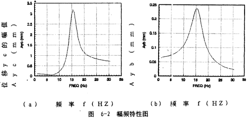 從圖6-2(b)可以知道,聯(lián)軸器從動端質(zhì)量塊mb的位移幅值A(chǔ)yb從1赫茲開始隨頻率增大而迅速增大直至軸系的一階固有頻率15.2赫茲,然后隨頻率增大而迅速減小,在一階固有頻率處達到最大值。