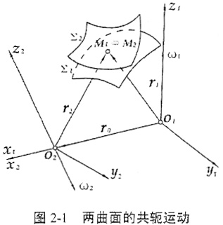 (1)曲面Σ1、Σ2上相對應(yīng)的接觸點(共軛點)M1、M2必須重合為一點(如圖2-1),即