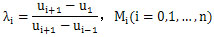 (1-λi)Mi-1+2Mi+λiMi+1=6f[ui-1,ui,ui=1],i=1,2,…,n-1。 (2-6)