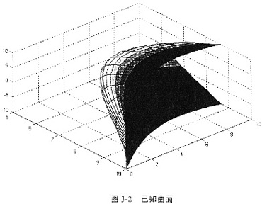已知一數(shù)字化曲面(如圖3-2所示),曲面上有21×11個規(guī)則網(wǎng)格節(jié)點,這些網(wǎng)格節(jié)點坐標值的X矩陣、Y矩陣、Z矩陣分別如表3-1、表3-2、表3-3所示。
