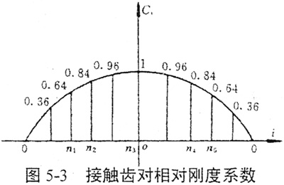 式中i為接觸齒對號,其各接觸齒對所對應(yīng)的相對剛度系數(shù)如圖5-3所示。