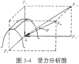 φ2b——第i對齒基圓上的點(diǎn)與靜參考系間所夾的圓心角。其接觸線上任意點(diǎn)k處的受力狀態(tài)如圖5-4所示。