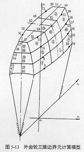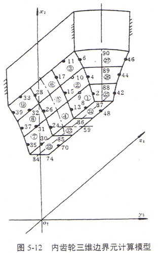邊界元法是從積分方程方法發(fā)展而來的,是繼有限差分法和有限元法之后的一種新的有效的數(shù)值分析方法。本節(jié)按照邊界積分方程直接法,從三維彈性問題基本微分方程和相應的邊界條件出發(fā),建立該三維問題的邊界積分方程,然后采用離散插值方案數(shù)值處理技術,化邊界積分方程為邊界元方程,最后在微機上對鼓形齒聯(lián)軸器嚙合時的彈性變形進行三維邊界元計算分析。