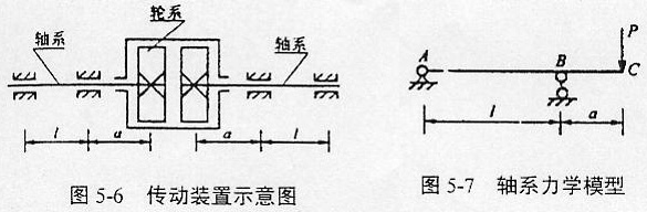 共軛鼓形齒聯(lián)軸器傳動裝置示意圖如圖5-6所示,其相應的軸系力學模型如圖5-7所示,模型中自由端載荷P=G/2,G為聯(lián)軸器的重量。