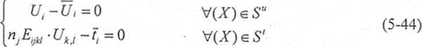 用高斯消去法求解線性方程組(5-42),便可求得所有邊界未知位移分量U和接觸面力分量T。