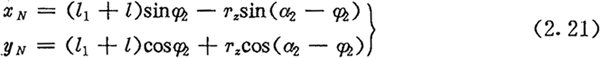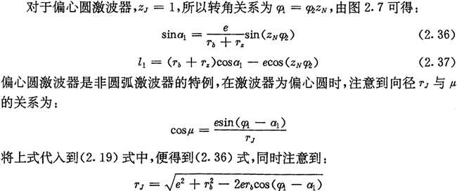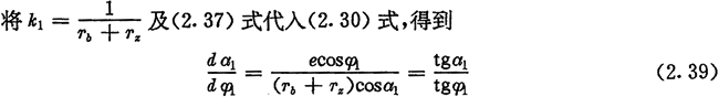 式(2.36)、(2.37)、(2.38)是偏心圓激波器的推桿減速器中l(wèi)1、a2與φ2的基本關(guān)系式,后面常用到它們。