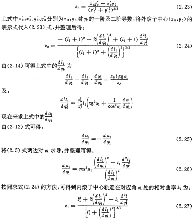 根據(jù)微分幾何,外滾子中心軌跡H2的相對(duì)曲率k2可由下式計(jì)算: