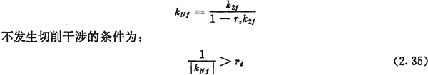 另外,當(dāng)選用半徑為Td的刀具加工內(nèi)齒圈齒廓時(shí),在齒根處可能發(fā)生切削干涉(過渡切削)。同樣由式(2.24)可計(jì)算出曲線H2在對(duì)應(yīng)于齒根處的相對(duì)曲率k2f,齒廓曲線HN在齒根處的相對(duì)曲率kNf為: