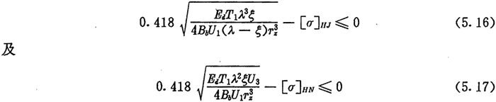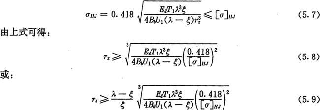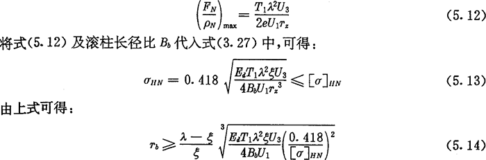 上式為根據(jù)內(nèi)齒圈與外滾子的許用接觸應力所確定的激波器半徑的取值范圍。顯然激波器半徑Tb的取值應同時滿足式(5.9)及式(5.14)的要求。