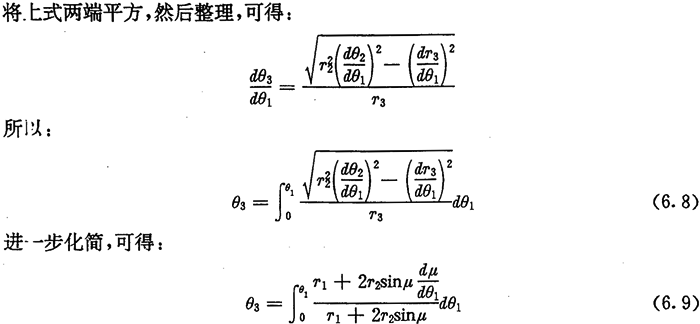 為了得到機構不發(fā)生運動干涉時的最大λ值,將(6.42)式中的小于號換成等號,并將λ代入,對于橢圓形太陽輪,得到下面等式: