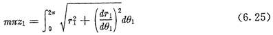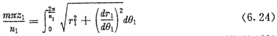 由于每個周期的弧長都是相等的,太陽輪節(jié)曲線的總長等于n1個周期的弧長之和,用n1乘以(6.24)兩邊,可得等分條件的另一種表達形式: