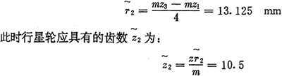 時常不是整數(shù),我們稱它為行星輪的參考齒數(shù)。實際采用的太陽輪雖然和退化的圓齒輪具有相同的模數(shù)m和齒數(shù)z1,但是它的形狀不是圓的,這就使得實際采用的行星輪齒數(shù)z2應比參考齒數(shù)