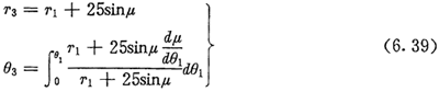由此可得到結論:太陽輪節(jié)曲線在一個周期內的弧長與內齒圈節(jié)曲線在一個周期內的弧長相等。若內齒圈的周期數(shù)為n2,則n2應大于n1。為了減小行星輪尺寸,應取最小整數(shù)值n1+1作為內齒圈節(jié)曲線的周期數(shù),從而可由(6.9)式得到內齒圈節(jié)曲線的封閉條件為: