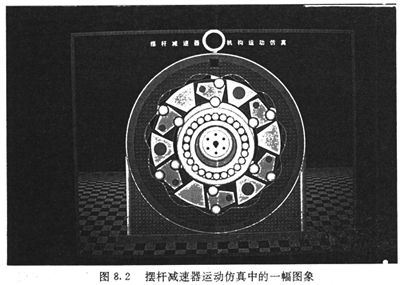 根據(jù)上述基本設(shè)計參數(shù)及各零部件的結(jié)構(gòu)參數(shù),將各主要運(yùn)動部件的工作過程在計算機(jī)屏幕上動態(tài)顯示出來。圖8.2是動態(tài)仿真過程中的一幀圖象。計算機(jī)仿真結(jié)果與理論分析完全一致。