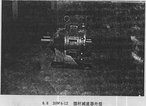 擺桿減速器的其它零部件都是在解放軍7435工廠進(jìn)行加工的,并在該廠完成裝配。圖8.7為2GW4-12擺桿減速器正在裝配之中,圖8.8是該機(jī)外型。裝配后,運(yùn)轉(zhuǎn)2個小時左右,機(jī)器噪音小,運(yùn)轉(zhuǎn)平穩(wěn),工作狀態(tài)良好。