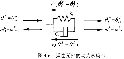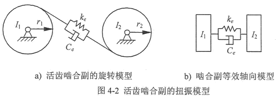 對于圖4-2a所表示的活齒與波發(fā)生器之間、活齒與中心輪之間、活齒與活齒架之間的嚙合副而言,當嚙合處的彈性變形不能忽略時,可以引入一個等級的彈性軸段,視為一個彈性元件,如圖4-2b所示。