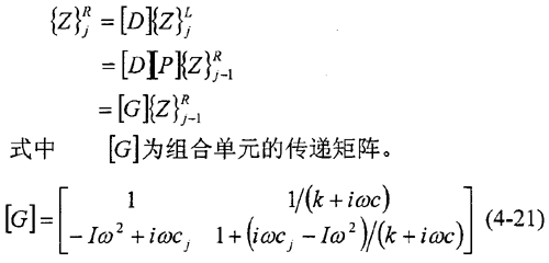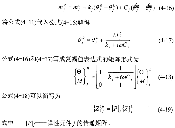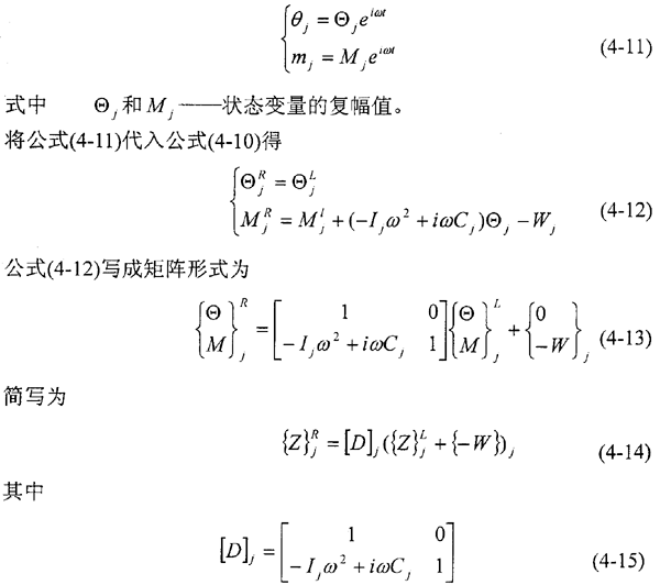 組合式(4-14)和(4-19),可建立第j-1個剛性圓盤右側(cè)和第j個剛性圓盤右側(cè)狀態(tài)矢量間的關(guān)系。