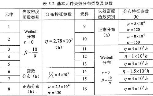 根據(jù)據(jù)第三章所設(shè)計的減速器及本章建立的故障樹對減速器進行可靠性的計算機仿真研究。其各基本元件壽命分布參數(shù)見表5-2,采用上述算法編程求解。