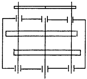 本研究在一個(gè)傳動(dòng)裝置中采用兩個(gè)成一定相位差的平行雙曲柄四桿機(jī)構(gòu),它們的連桿內(nèi)齒輪與兩個(gè)擺線(xiàn)輪相嚙合的情況。為了實(shí)現(xiàn)靜力平衡,兩個(gè)平行雙曲柄四桿機(jī)構(gòu)的相位差設(shè)計(jì)為π,結(jié)構(gòu)型式見(jiàn)圖2.5。