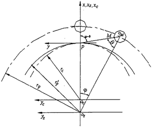 已知rp,rrp,a,Zp=Zp′/2,△rp,△rrp,δ,由式(2-9)算得λ值,再求出φA,xA,yA。那么未修形前齒頂圓的半徑rac即可由下式求得: