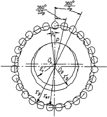 由(2-8)可知,擺線(xiàn)輪的實(shí)際齒形決定于rp,α,rrp,Zp,△rp,△rrp,δ這七個(gè)獨(dú)立參數(shù)。