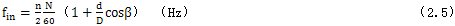 2.軸承等傳動(dòng)件產(chǎn)生的激勵(lì)頻率滾動(dòng)軸承旋轉(zhuǎn)頻率為: