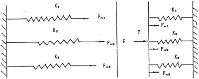 實(shí)際上,環(huán)板的受力與Fn(ф)有關(guān),因?yàn)槿龎K環(huán)板共同受載時(shí)彼此約束,構(gòu)成靜不定系統(tǒng),如簡(jiǎn)化模型圖2-8所示。
