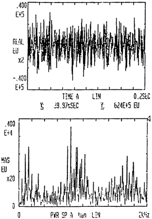 脈沖激勵(lì)信號(hào)的時(shí)域信號(hào)及自動(dòng)功率譜密度函數(shù)如圖4-3所示。脈沖響應(yīng)信號(hào)的時(shí)域波形及自功率譜密度函數(shù)如圖4-4所示,從圖中可以看出脈沖激勵(lì)信號(hào)和脈沖響應(yīng)信號(hào)均較為理想。