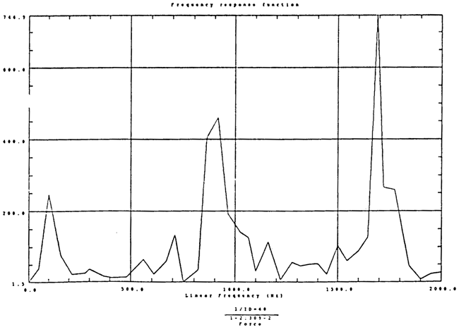 有了脈沖激勵(lì)信號(hào)和脈沖響應(yīng)信號(hào)后,CF-355頻譜分析儀就能計(jì)算出測(cè)點(diǎn)12X向由于14點(diǎn)X向激勵(lì)間的頻響函數(shù)H(ω)及其相干函數(shù),如圖4-5所示。圖4-6是頻響函數(shù)H(ω)的倒數(shù)。