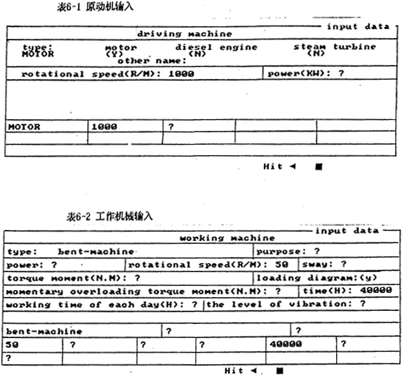 系統(tǒng)的輸入是專家系統(tǒng)的“開場條件”,人工設計的方法是由定貨單位向設計人員提供任務書(以口頭或書面形式),設計人員通過這些已知條件進行設計工作。專家系統(tǒng)則要求設計人員(或由定貨人員)與計算機進行“對話”,以便使專家系統(tǒng)了解原始的已知條件。事實上,由于受人工智能和計算機技術發(fā)展的限制,還不能同計算機形成視、聽對話,因而,圓柱齒輪減速器設計專家系統(tǒng)仍采用傳統(tǒng)CAD所采用的方法,即采用精確的輸入方式(或稱數(shù)據(jù)輸入方式而非語言物入方式)。