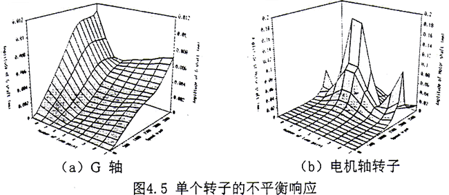 按此標(biāo)準(zhǔn),在G軸和電機(jī)軸軸承處的振動不能大于63.8(μ)。從圖4.5a~4.5b和圖4.6a~4.6f可見,不論是用單軸還是用耦合系統(tǒng)來計(jì)算,除了在共振區(qū)域內(nèi),上述振動標(biāo)準(zhǔn)完全滿足。