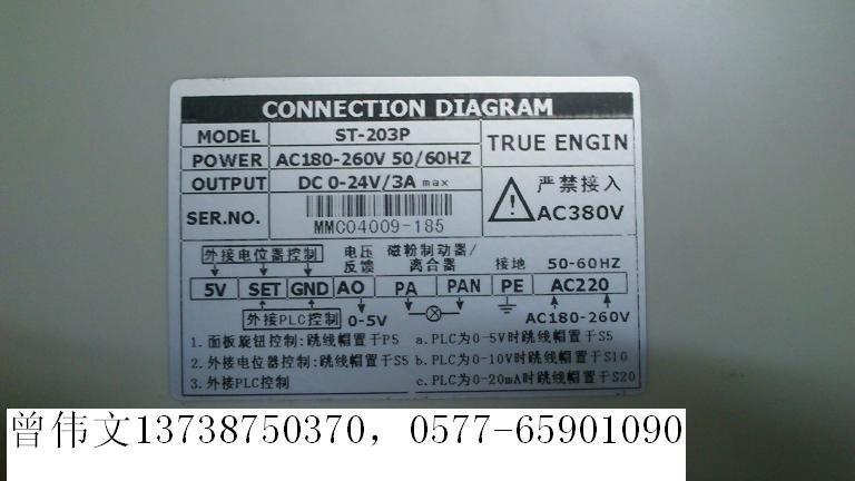 MODEL:ST-203P數(shù)顯手動(dòng)張力控制器溫州祺強(qiáng)機(jī)電設(shè)備有限公司(曾偉文13738750370,0577-65901090,zhwewe123@163.co... 2019-1-22 [重慶重慶] | 面議/臺(tái) 1臺(tái)起訂 | ![]() ![]() ![]() 金牌會(huì)員 | ![]() | |