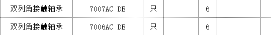 角接觸軸承 7001C GB/T292-1994 8件,雙角接觸軸承 7007AC DB 6只,雙角接觸軸承 7006AC DB 6只。