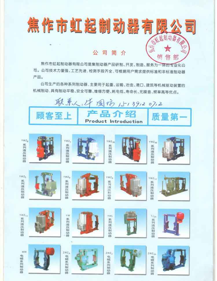 焦作市威豪制動設備廠專業(yè)生產(chǎn)焦作制動器廠, 【 劉經(jīng)理 15978755133】 焦作市威豪制動設備廠公司(簡稱“焦作威豪”)焦作市威豪制動設備廠(原焦作市第二制動器廠)是中國重型機械工業(yè)協(xié)會成員廠。