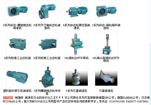 公司生產(chǎn)R系列斜齒輪減速電機(jī),S系列斜齒輪-蝸輪減速電機(jī),F系列平行軸斜齒輪減速電機(jī),K系列斜齒輪-錐齒輪減速電機(jī),擺線針輪減速機(jī), T系列螺旋錐齒輪轉(zhuǎn)向箱,H、B系列標(biāo)準(zhǔn)工業(yè)齒輪箱,蝸輪絲桿升降機(jī),RV系列蝸輪蝸桿減速機(jī)等十余個系列,數(shù)千種規(guī)格的產(chǎn)品,是目前國際上工業(yè)動力傳輸領(lǐng)域最普遍采用的減速驅(qū)動裝置。