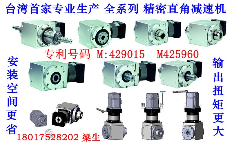 The company mainly produces T series of spiral bevel gear commutator, HD hardened gear reducer, ARA series helical bevel gear steering box, SWL worm screw lift, JWM spiral elevator, P planetary gear reducer, precision planetary reducer, WP cast iron worm gear reducer, RV worm wheel worm reducer, R series helical gear reducer of hard toothed surface, S series helical gear worm reducer, K series helical bevel gear reducer, F series parallel shaft helical gear reducer, MB CVT, WB Mini cycloid reducer, X/B series cycloid reducer, HB standard industrial gear box, M large gear reducer, MC hardened gear reducer, G fully enclosed gear deceleration motor each type of reducer, ZDY hardened cylinder gear reducer, nearly twenty thousand kinds of speed ratio, can be matched with the ordinary Y (Y2) B (YB) motor, explosion-proof motor, Z DC motor, brake E (YEJ) V (YVP), frequency conversion motor, variable frequency motor brake VE (YVEJ) motor, G motor and rail all kinds of non-standard connection using servo motor.