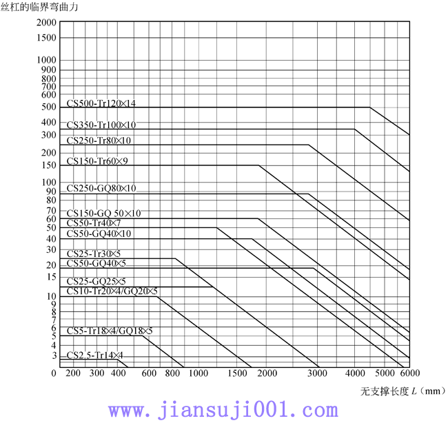 絲杠長度與極限負荷關系圖表