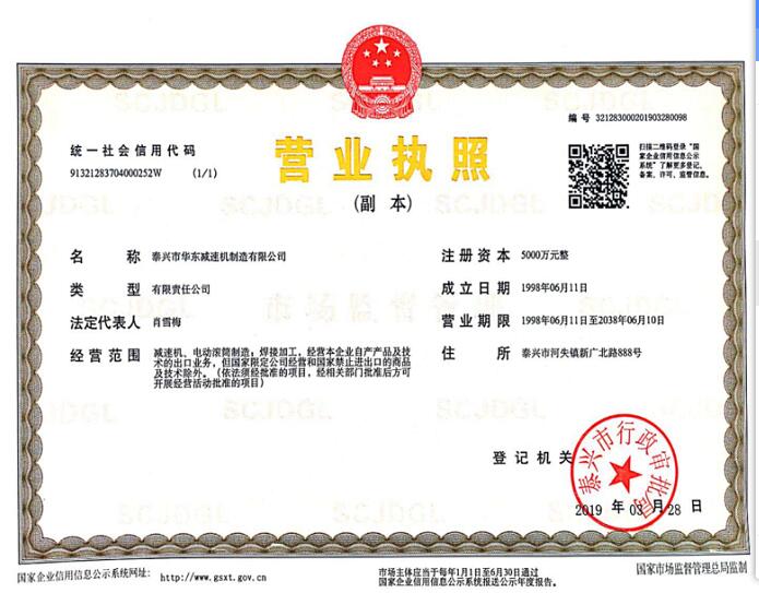Taixing huadong Reducer Manufacturing Co., Ltd.