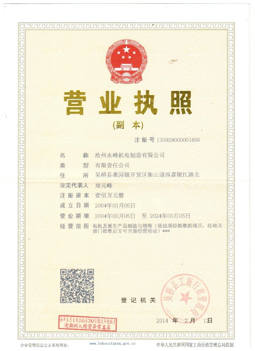 Cangzhou Yongfeng electromechanical manufacturing Co., Ltd